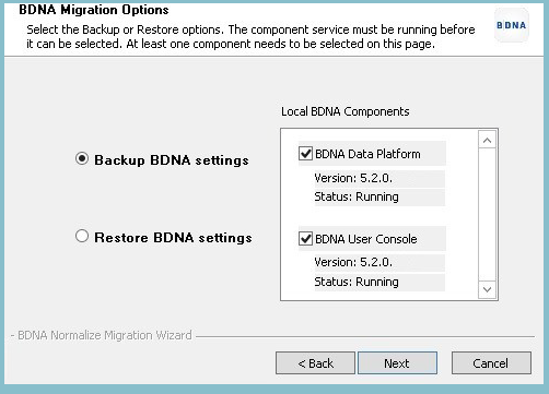 - Select Backup Data Platform settings and then select the check boxes for Data Platform and/or Data Platform User Console .